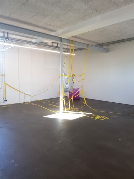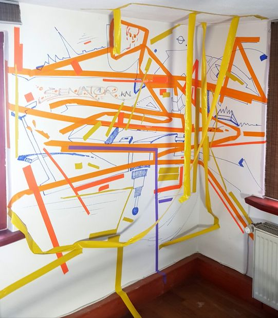 Wandinstallationen: Acryl, Lack, Marker, Tape und Folien auf Wände/Bauzeune. With Karin Kopka - Musch (Münster/Heidelberg) and Maso (Stuttgart) @ Atelier Frankfurt