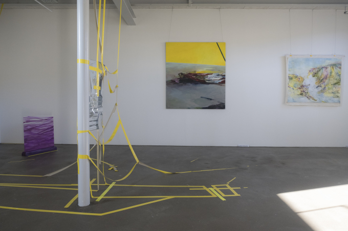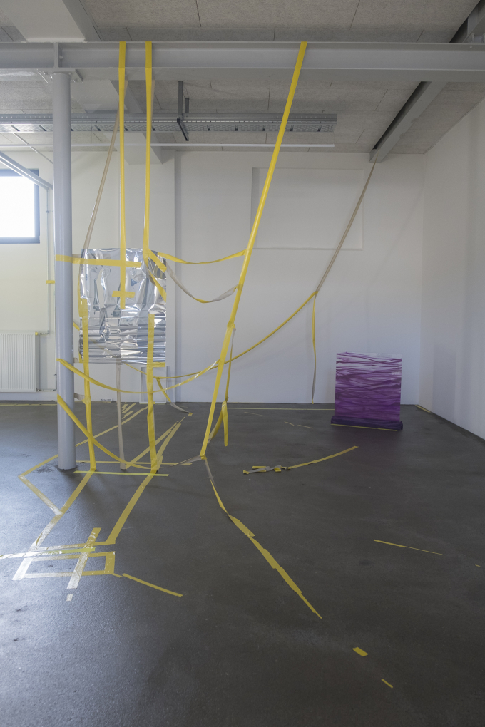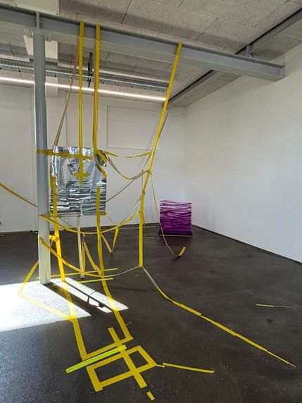 70 x 80 cm, Tape, Acryl, Lack und Stifte auf Leinwand