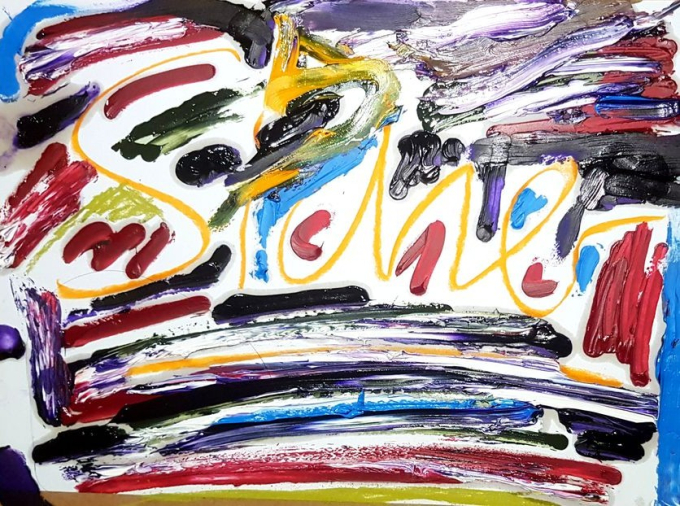 1,40 x 1,50 m, Acryl + Lack auf Leinwand.