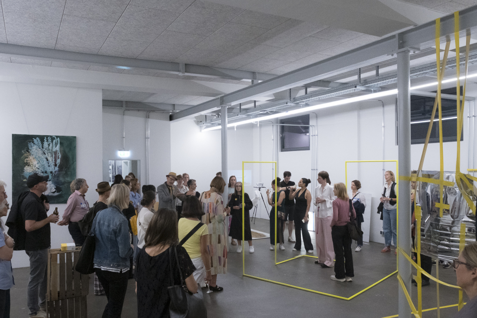 Gruppenarbeit, Kunstverein 2025 Hamburg. Skulptur: Zirka 80 x 60 cm, Lack auf Dachlatte